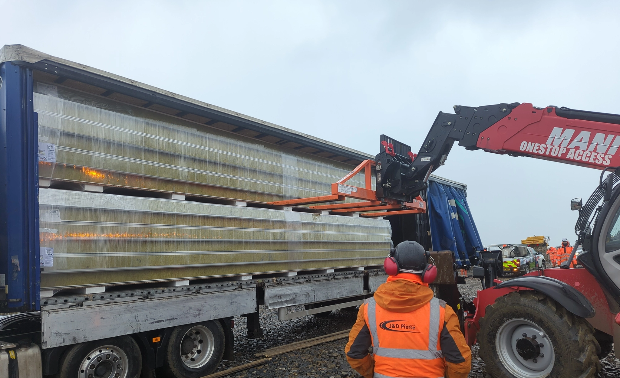 Part of the presentation day related to the safe unloading and storage of panels. In this instance we will be installing 175mm thick trapezoidal rockwool core panels, which have been transported all the way from a production facility in Belgium.